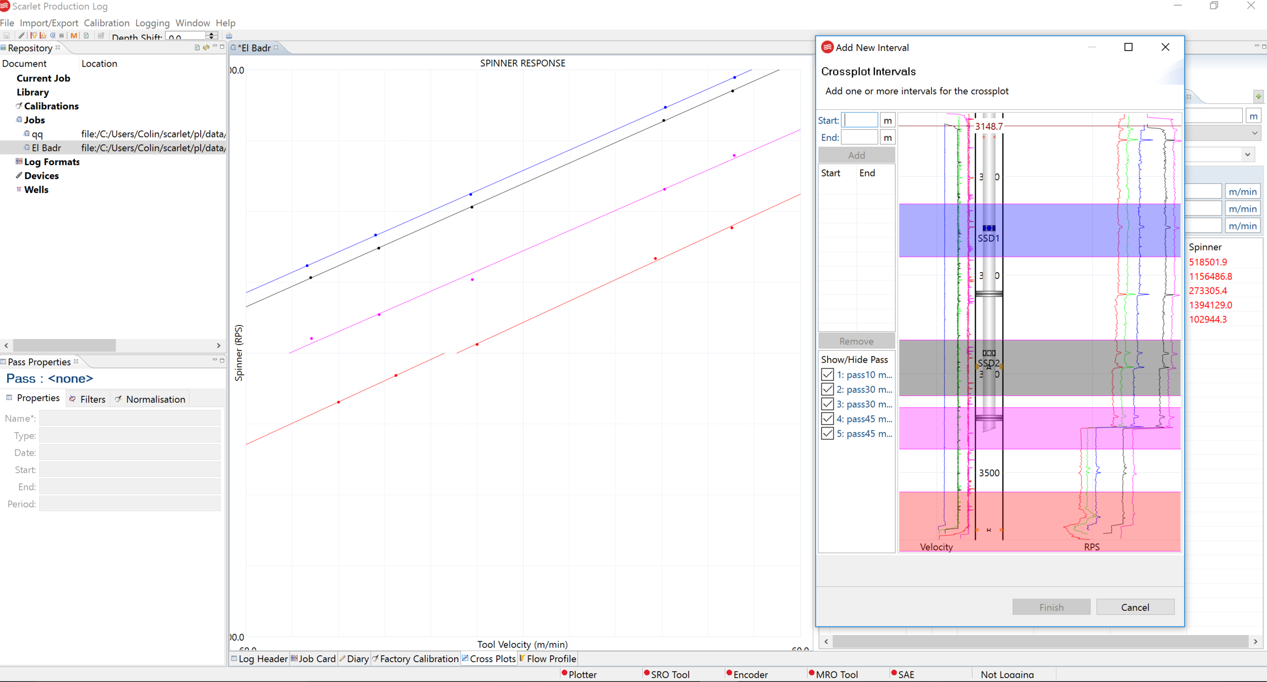 From the well description, intervals of interest are created and the crossplots are drawn automatically.